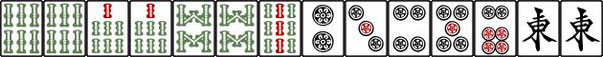 だが心配ご無用。実はこれは細心の注意を払った打牌。ファインプレーだった。そのとき西家は9ピン・白・2ソーをポンて明らかに対々志向。当然聴牌であろう。事実、手牌は下図。9ソーはロン牌だった。